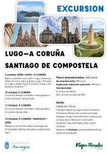 Volvemos a ponernos en marcha con una excursión con la que visitaremos Lugo, A Coruña y Santiago de Compostela, desde el 9 hasta el 12 de octubre.