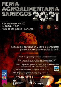 El día 5 de diciembre de 2021 tendrá lugar la tercera edición de la Feria Agroalimentaria de Sariegos, en la que empresas y productores de León nos mostrarán sus productos gastronómicos y artesanales, que podremos degustar y adquirir.