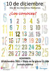 El día 10 de diciembre se celebra el Día de los Derechos Humanos, reflejados desde 1948 en una declaración que proclama los derechos inalienables que corresponden a toda persona como ser humano, independientemente de su raza, color, religión, sexo, idioma, opinión política o de otra índole, origen nacional o social, posición económica, nacimiento o cualquier otra condición.