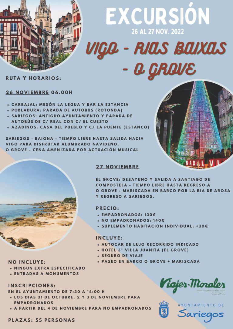• Sariegos – Baiona – tiempo libre hasta salida hacia Vigo para disfrutar el alumbrado navideño