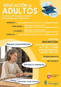 Como en años anteriores, se ha organizado una Escuela de Educación de Adultos, destinada prioritariamente a la tercera edad, en la que poder repasar conocimientos, entrenar la memoria y aprender cosas nuevas.