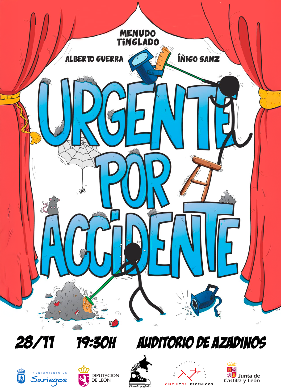 Continúa la programación de Circuitos Escénicos 2025 de Castilla y León, con la inestimable colaboración del Instituto Leonés de Cultura y la Diputación de León, con una hilarante obra de teatro a cargo del grupo Menudo Tinglado, titulada «Urgente por accidente».