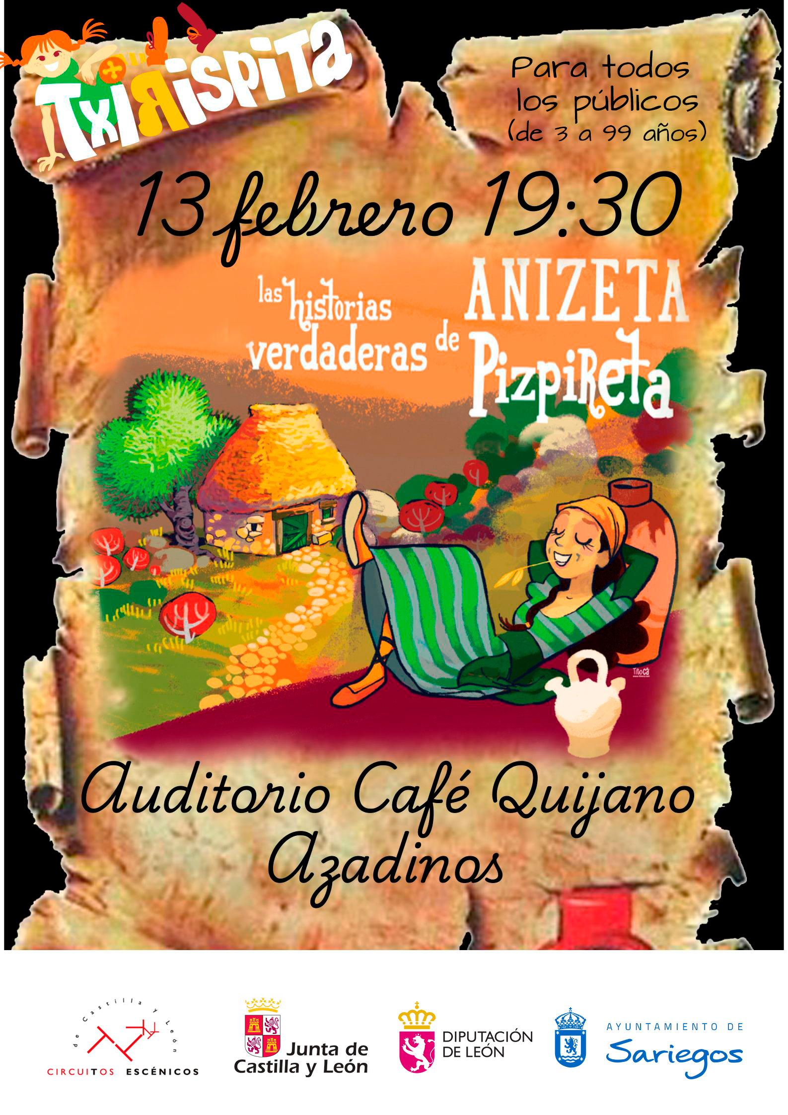 En esta ocasión nos visita Txirispita con su espectáculo «Las historias verdaderas de Anizeta Pizpireta», un cuentacuentos divertidísimo para todas las edades.
